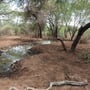 Auf dem Weg zu einem weiteren Rangerposten werde ich von vielen beeindruckenden Zwei- und Vierbeinern verwöhnt, die sich von meiner Anwesenheit scheinbar nicht allzu sehr gestört fühlen. Bei einem Damm, der von FSS realisiert wurde, teilt sich ein einsamer Büffel das wenig verbliebene Wasser mit ein paar Enten, für die das zu Ende gehende und lebenswichtige Nass noch zum Baden reicht. Ein paar auf meinem Weg entgegenkommende Elefanten zwingen mich und meinen kleinen Suzuki Jimny nachzugeben und den mehr braunen als grauen Riesen den Vortritt zu lassen. Angekommen im Rangerposten Chubi zeigt sich mir diese kürzlich renovierte Unterkunft in neuer Schönheit und die solarbetriebene Grundwasserfassung ist ein Prototyp und eindrückliches wie ökologisches Vorzeigeprojekt, wie in Zukunft die von Jahr zu Jahr steigende Wasserknappheit für Mensch und Tier etwas gemildert werden kann.
