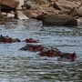 Am Nachmittag inspizieren wir noch den Rangerposten Kirawira, der ebenfalls vor Jahren von FSS finanziert wurde und sich immer noch in einwandfreiem und gepflegtem Zustand präsentiert. Bei der Verabschiedung von den Rangern beim Posten werde ich gefragt, ob ich ein noch paar Tiere sehen möchte. Ich bin ein bisschen erstaunt über diese Frage, weil ich bei der Anfahrt zum Posten kein einziges Tier ausmachen konnte, deshalb antworte ich verdutzt mit "ja, gerne". Er führt uns nur ein kurzes Stück zum Fluss hinter dem Rangerposten und zu meinem Erstaunen wimmelt es dort von Krokodilen und Nilpferden.