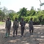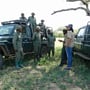 Der letzte Tag im November überraschte mich in jeder Hinsicht, durch diverse unerwartete und faszinierende Begegnungen, angefangen mit diesen zwei prächtigen Schönheiten links im Bild, auf dem Weg zum Treffpunkt zu den Rangern, die mir zeigen wollen, wie sie Wilderer jagen, Fallen finden und diese entschärfen. Ein Rangertrupp besteht in der Regel aus einem Fahrer, einem Schützen, einem erfahrenen Truppenführer und zwei Rangern. Ihre Augen, Nasen und Ohren sind aber ihre eigentlichen Werkzeuge. Sie sehen, wenn ein Ast nicht natürlich am Boden liegt und von einem Wilderer platziert wurde, um Tiere in die Richtung der Falle zu lenken. Sie riechen, wenn etwas in der Luft liegt, das ungewöhnlich und verräterisch ist. Und sie hören die kleinsten Geräusche, die sie mit ihrer grossen Erfahrung genau zu deuten wissen. Und so dauert es nicht lange bis sie die erste Schlingfalle gefunden haben. Sie erklären mir den Aufbau der Falle und mit welchen Tricks die Wilderer die Tiere in die Falle locken. Es ist für mich absolut beeindruckend, wie überlegt, erfahren und koordiniert die Ranger bei ihrer Arbeit vorgehen.