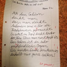 Heute geht es Mal ein bisschen intellektuell zu und her in meinem Blog. Dazu habe ich zuerst einmal in meinem Archiv diese Gedanken einer 4-Klässerlin gefunden. Aber damit noch nicht genug, gestern war in der "Schweiz am Sonntag" das Interview mit Thomas Hürlimann unter dem Titel "Die Schweiz ist dabei ihr Gedächtnis zu verlieren" zu lesen. Bis anhin hatte ich noch nichts über Thomas Hürlimann gehört oder gelesen, aber beim Inhalieren seiner Gedanken bekam ich den Eindruck, dass dieser Herr die Sache mit dem Gehirn und dem Gedächtnis ganz gut im Griff hat. Intelligent zu sein ist eben nur die halbe Miete, oder nicht einmal. Viel wichtiger ist, was man damit macht und da hätten einige auf dieser Welt noch sehr viel Nachholbedarf;-))