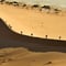 Gestern hiess es um fünf Uhr morgens Aufstehen, damit alle vom Frühstück gestärkt, und vom Warten vor dem Gate zusätzlich angespornt, den langen Marsch auf die höchste Düne, den Big Daddy, in Angriff und erfolgreich unter die Füsse nehmen konnten. Die Temperatur jetzt im Winter ist ideal, um auf den grossen Sandberg zu kraxeln und die traumhafte und berauschende Aussicht oben entschädigt für den 1½- bis 2-stündigen Aufstieg. Und ein besonderes Erlebnis ist es dann Barfuss von der Spitze auf direktem Weg den steilen Abhang zum ausgetrockneten Salzsee zu rennen. Dies braucht überhaupt keine Kraft mehr und innert weniger Minuten ist der ganze Höhenunterschied wieder vernichtet.
