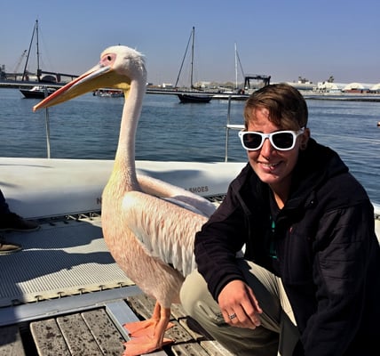 Gestern sind wir von Walvis Bay aus mit einem Katamaran in See (Atlantik) gestochen und wir haben dabei so einiges zu sehen bekommen, so z.B. viele Ohrenrobben, Pelikane, Tümmler und sogar einen Buckelwal. Und als Verpflegung hat es auf dem Schiff frische und feine (wer sie gerne hat) Austern gegeben, angereichert mit einem bunten "Assortissement" an Snacks und Getränken. Den Ausflug perfekt gemacht hat Walter, der Kapitän, der während dem Gleiten auf dem Wasser in Deutsch und Afikaans viel Wissenswertes verlauten liess.