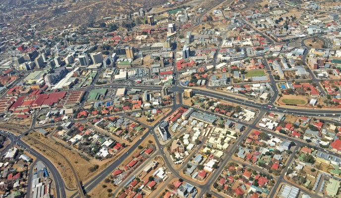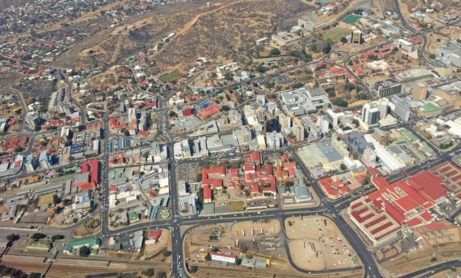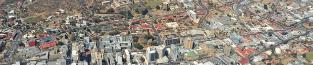 Beim Start gestern vom Stadtflughafen Eros konnte ich an meinem Fensterplatz für einen kurzen Moment die herrliche Sicht auf Windhoek geniessen und auch ein paar Bilder auf Pixel aufnehmen. Als Orientierung hilft sehr gut die Christuskirche, das Unabhängigkeits-Gedenkmuseum sowie der Tintenpalast, die alle drei an der Robert Mugabe Avenue liegen und im oberen Teil der Bilder gut zu sehen sind. Parallel zur Robert Mugabe Avenue ist die Zentrumsstrasse Independence Avenue sowie die sechsspurige Ndemufayo Avenue, an der die grosse und rotbedachte Wernhil Park Mall liegt und die in der Nacht von aufstrebenden, gelangweilten und reichen "Schumi's" gerne als Rennstrecke missbraucht wird.